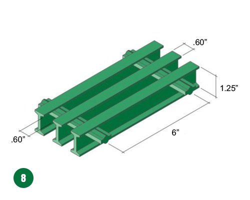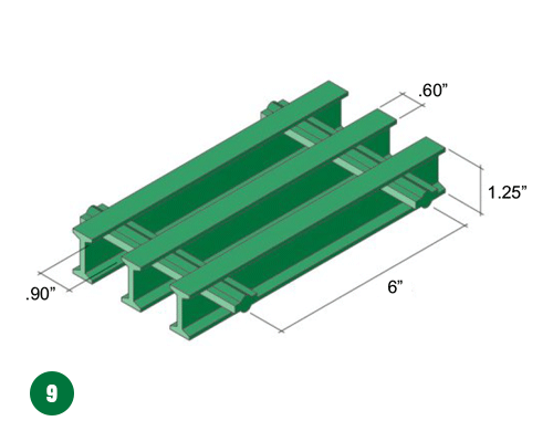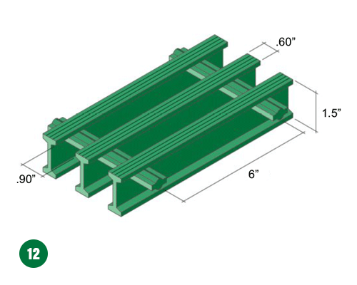 The following sizes and types of pultruded Dock/Decking Boards are available from AMD: